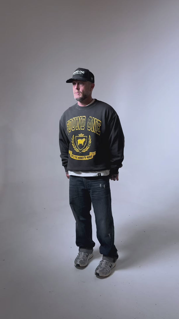 Introducing the Vintage Varsity Crew in faded black, where vintage aesthetic meets modern styling. Crafted from mid-weight fleece and washed to perfection, this sweatshirt has a soft lived in feel while maintaining its shape. This crew features an oversized fit with a nice drop shoulder and slight crop making it not too short but not too long either giving it an updated boxier look. Each Sweatshirt is hand distressed to give it the perfect vintage look, almost as if you have had it for years.